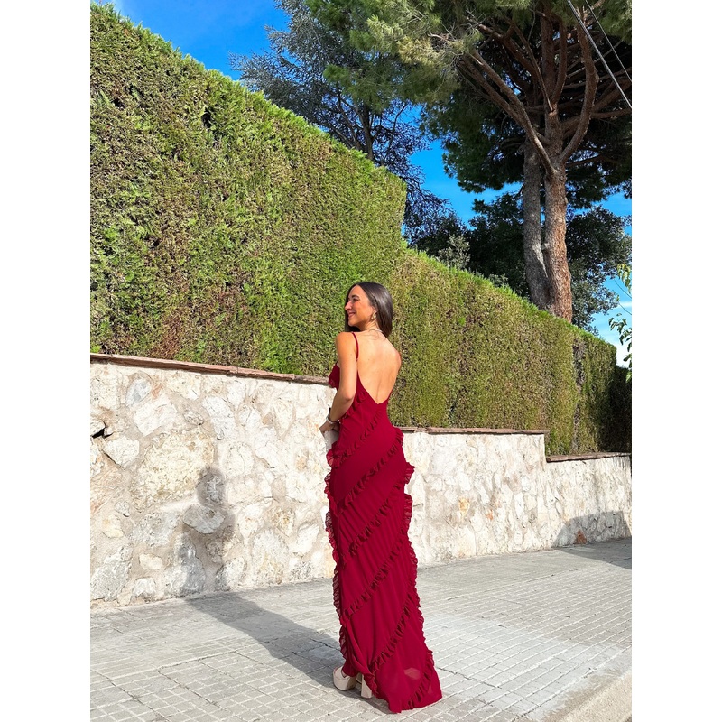 Vestido volantes crepe burdeos U (32-36)