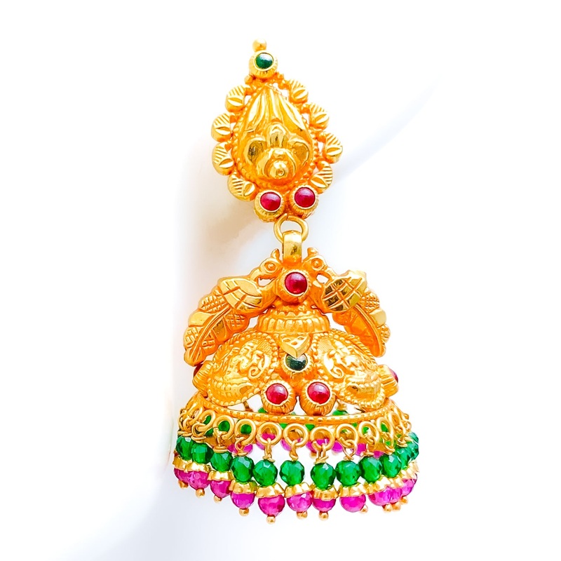 Vibrant Multi-Bead 22k Gold Temple Jhumki Earrings