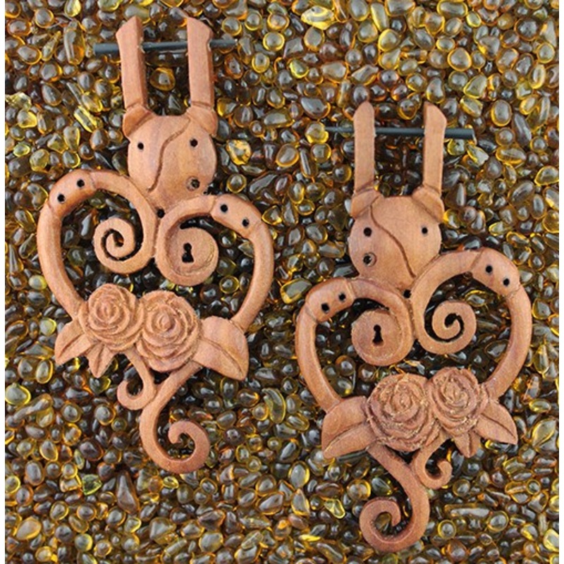 These victorian rose stirrup earrings are handcarved from sabo wood by Urban Star Organics. The pins that secure these earrings will measure between 16g and 14g in the wearable area.Last chance to own these! We can't restock this design because Urban Star