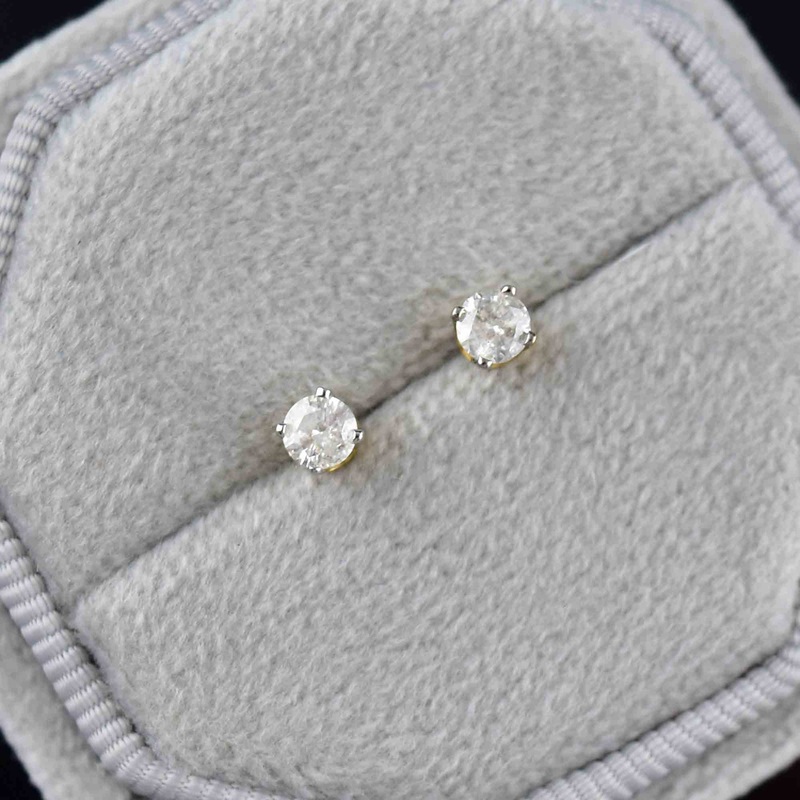 Gemstone: Diamond – roughly 0.30 CTW together. Measuring 3.4mm round each.