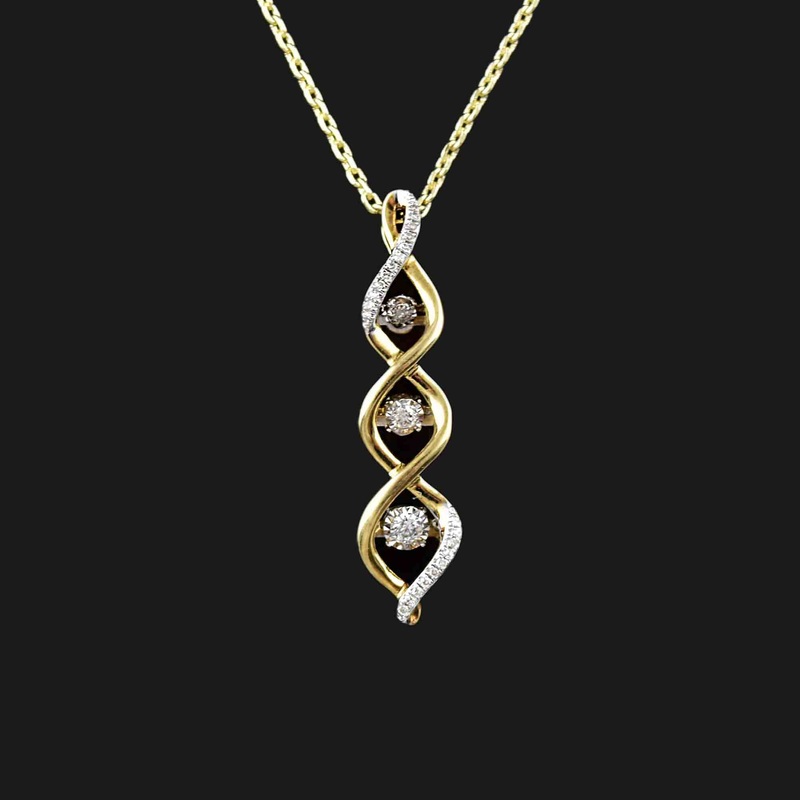 An exclusive take on a timeless favorite – the vintage diamond journey necklace. Three dancing diamonds grace the twisted crossover solid gold frame, surrounded by a sparkling diamond-studded design. To your girlfriend or fianc, a journey necklace expresses your willingness of taking a life journey with her, through the hard times as well as good times. To your wife, a journey pendant gift conveys the message that your love to her has been growing through the years and that you highly appreciate it and want to go through the rest journey with her. A wonderful sentimental piece of jewelry!