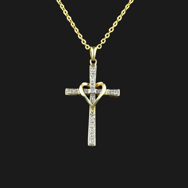 Vintage 10K Gold Diamond Cross Pendant Necklace