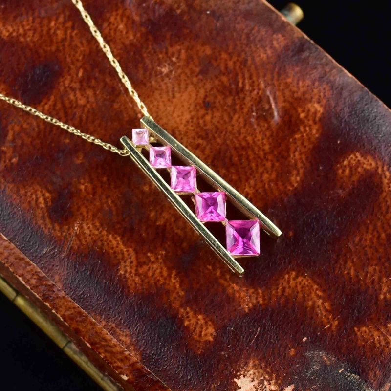 Vintage 10K Gold Ruby Journey Pendant Necklace