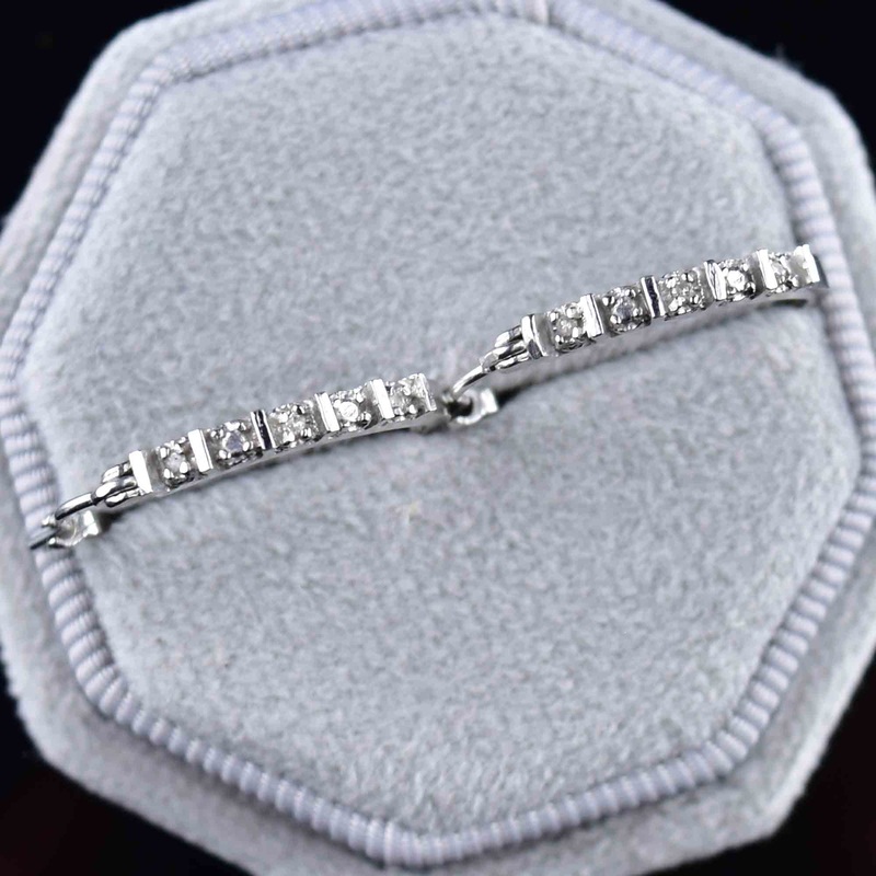 These timeless vintage solid 10K white gold huggie hoop style earrings feature a row of sparkling diamonds that dance on the front. The diamonds are open-backed, allowing all light to glimmer through. These subtle pierced earrings are perfect for brides or
