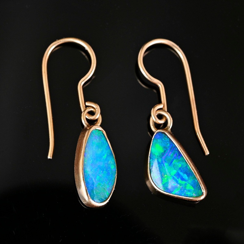Vintage 14K Gold Australian Boulder Opal Earrings