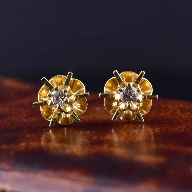 Vintage 14K Gold Diamond Buttercup Stud Earrings