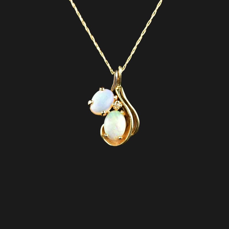 Be the first to review “Vintage 14K Gold Diamond Double Opal Pendant Necklace”