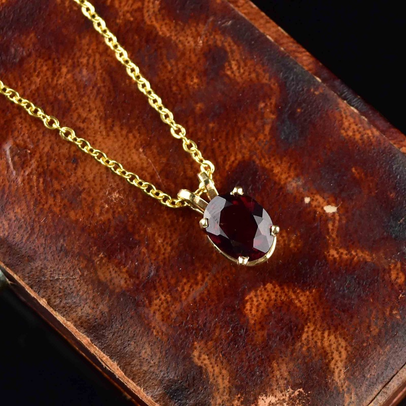 A beautiful vintage garnet pendant necklace is available, featuring an oval cut deep red garnet stone in a luxurious 14K gold basket style setting. It makes for a meaningful gift to show your love and admiration towards someone dear to you.