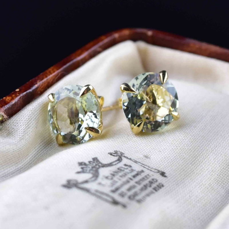 Be the first to review “Vintage 14K Gold Green Amethyst Prasiolite Stud Earrings”