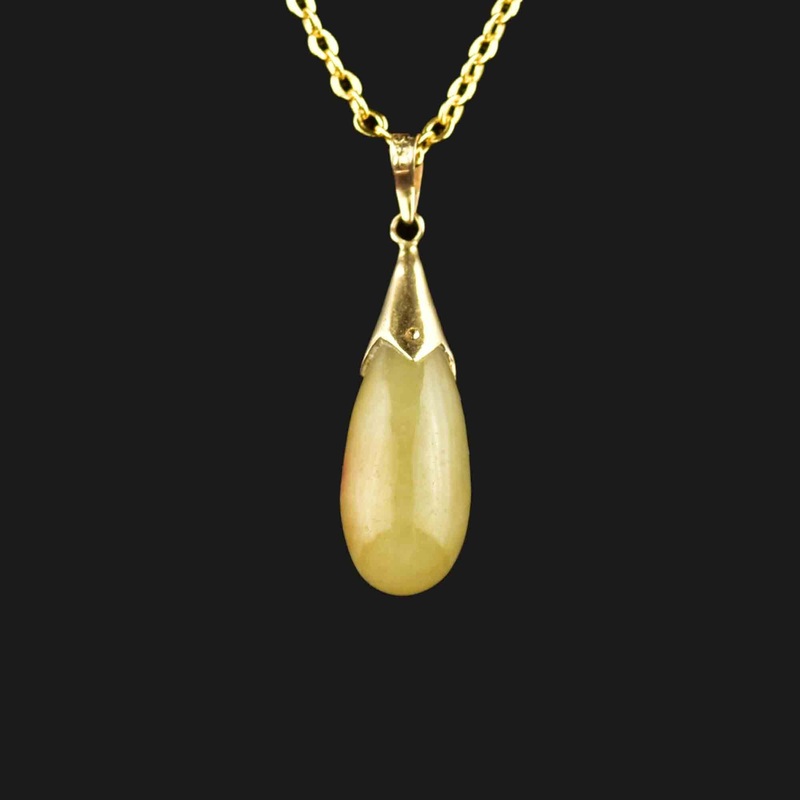 Vintage 14K Gold Milky Jade Teardrop Pendant Necklace