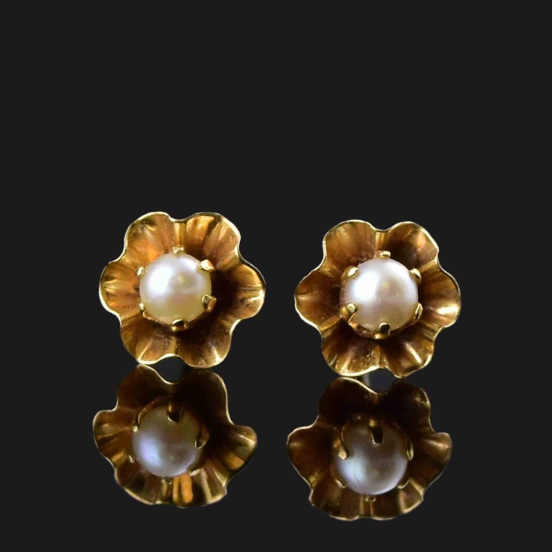Be the first to review “Vintage 14K Gold Pearl Buttercup Floral Stud Earrings”