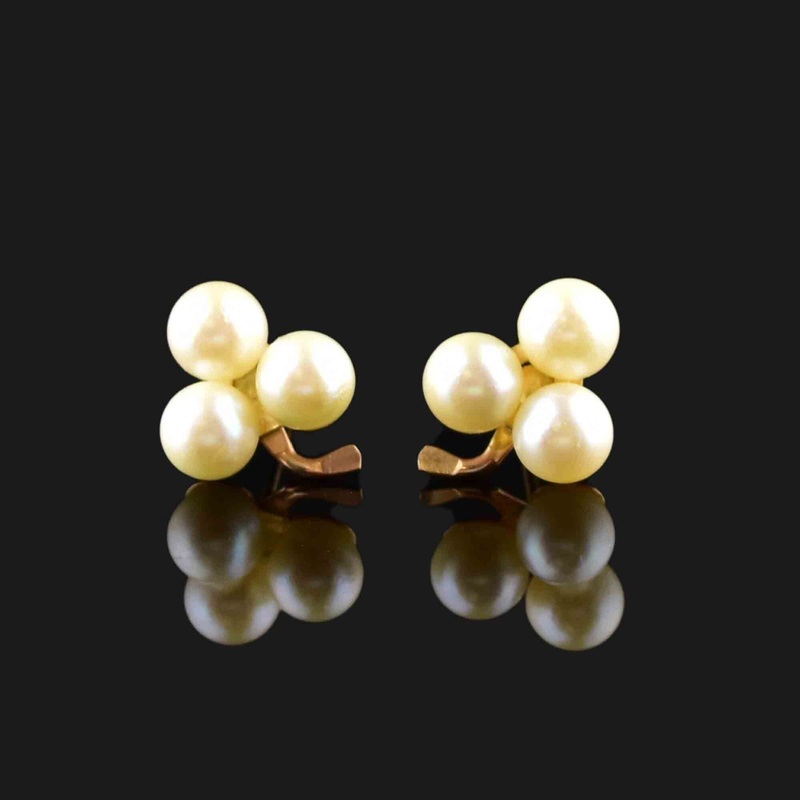 Vintage 14K Gold Pearl Clover Stud Earrings