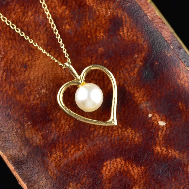 A charming 14K gold heart pendant with a pearl at its center, this vintage piece exudes elegance and simplicity. A must-have for any classic jewelry collector!