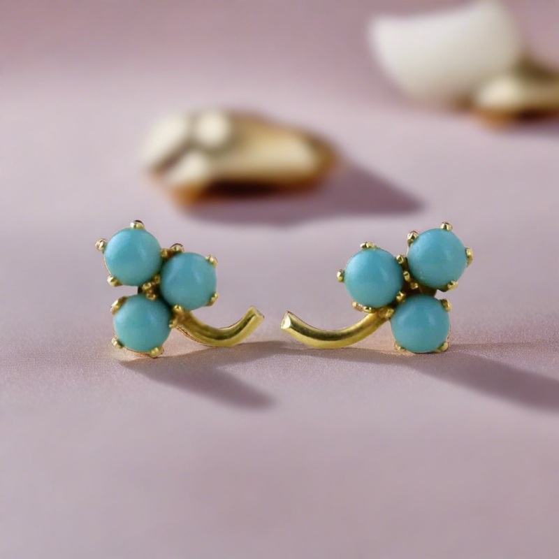 Featuring a trio of turquoise gemstones set in a 14K yellow gold, these stud earrings have a timeless clover design with a gold stem. Perfect for any occasion, they make a unique and playful addition to any outfit!Video available here... https://youtube.co