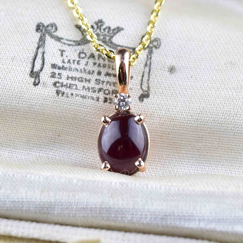 An exquisite vintage tourmaline pendant necklace! This divine little pendant shows off a rich deep pink tourmaline cabochon in a gorgeous basket setting — plus, it’s got a sparkling diamond just basking above! All snugly housed in a sumptuous 14 karat rose gold mounting, this ravishing gem is sure to steal the spotlight!