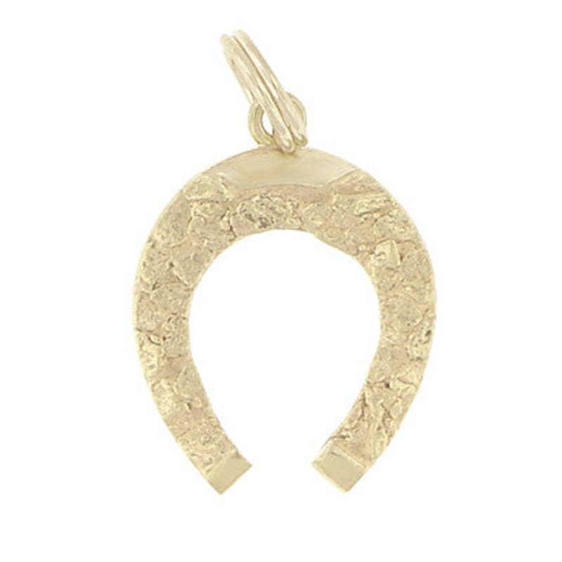 This 10K gold nugget horseshoe charm features a horseshoe for good luck! Measuring 5/8 inch wide and 3/4 inch high. Perfectfor anyone who loves gaming or western collectibles, this lucky horseshoe charm is sure to be a conversation starter!
