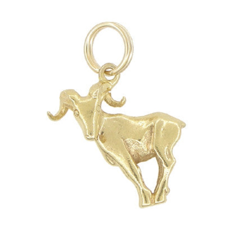This beautiful Aries ram charm is crafted in 10K yellow gold and features a solid three dimensional Aries ram. This zodiac charm measures 3/4 inch wide by 7/8 inch long.This Aries charm is the perfect gift for an Aries (Zodiac sign for March 21 to April 20