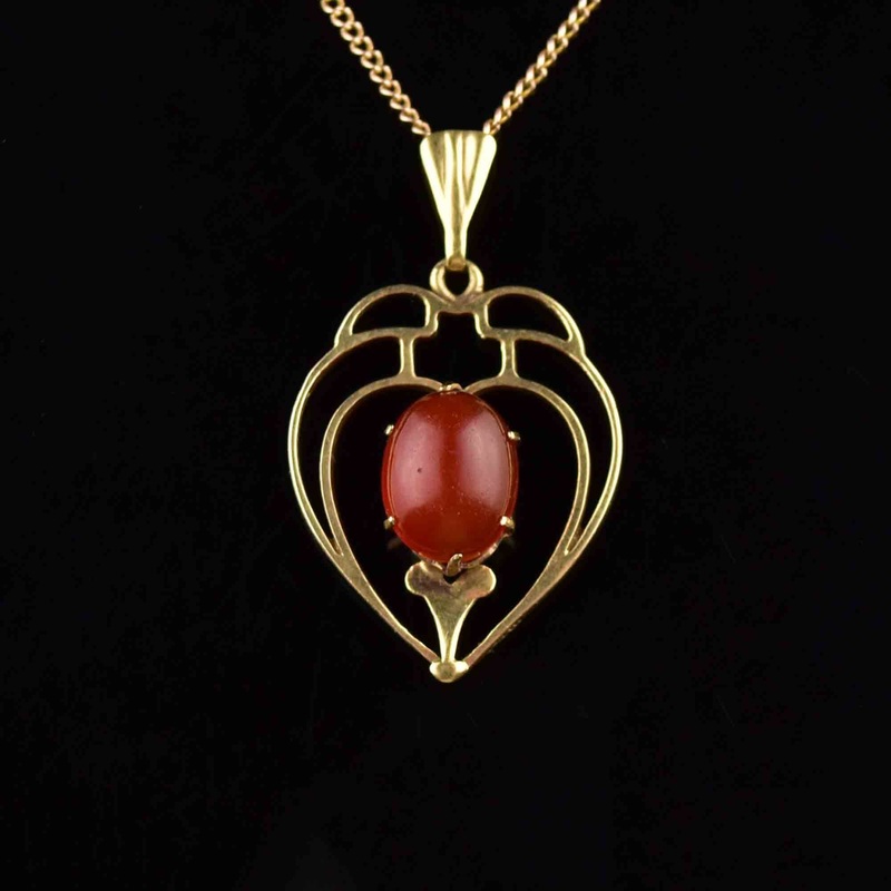 This pendant's carnelian cabochon center, surrounded by a gold frame, gives it the shape of a heart and a touch of Art Deco charm. It's the perfect combination of sweetness and sentimentality.Video available here... https://youtube.com/shorts/fW2pyLDx1yMat