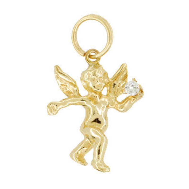 Vintage Cherub Charm with Diamond in 14K Yellow Gold