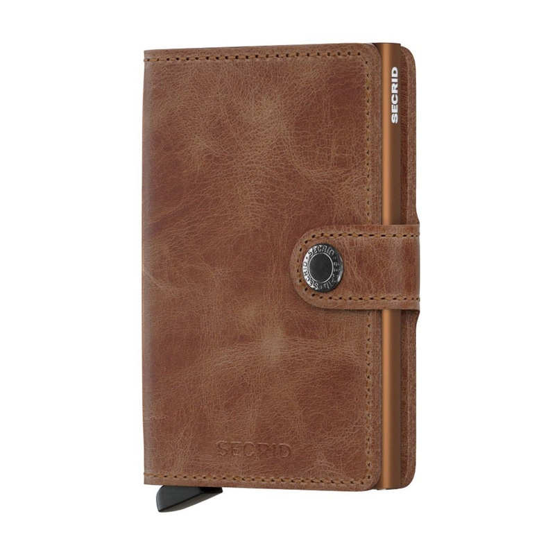 The patented mechanism allows you to slide out your cards with one simple motion, ready for immediate use. The aluminium protects from bending, breaking and unwanted wireless communication.VintageOur Vintage leather has a carefully abraded surface and a wa