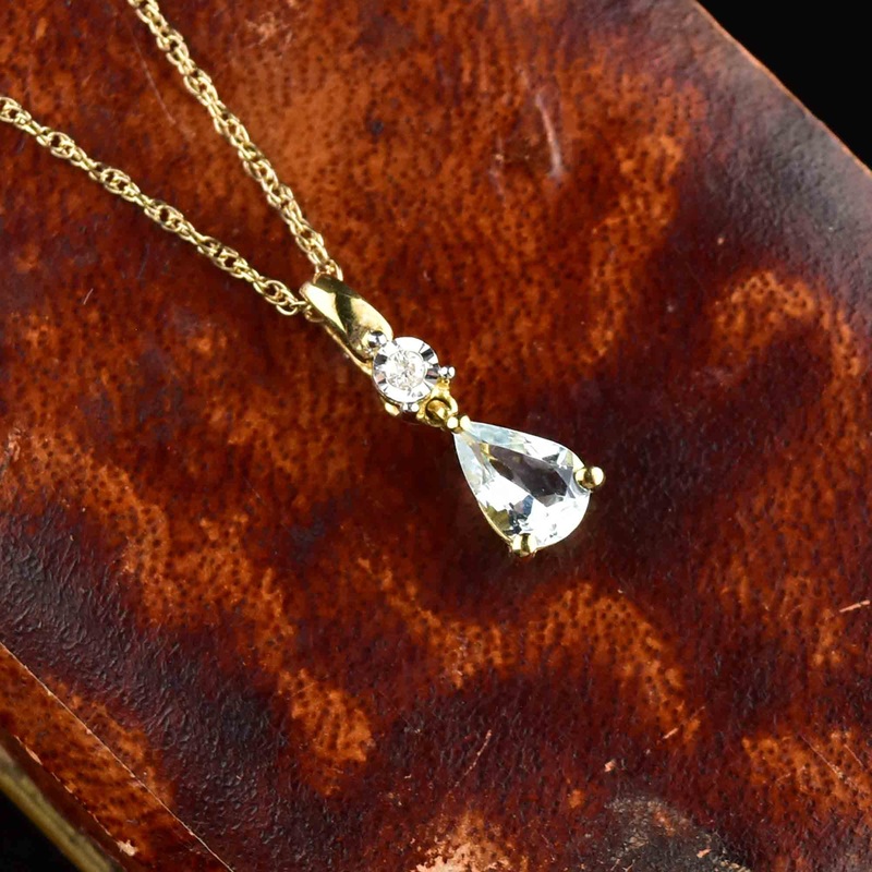 Vintage Diamond Aquamarine Pendant Necklace in 10K Gold