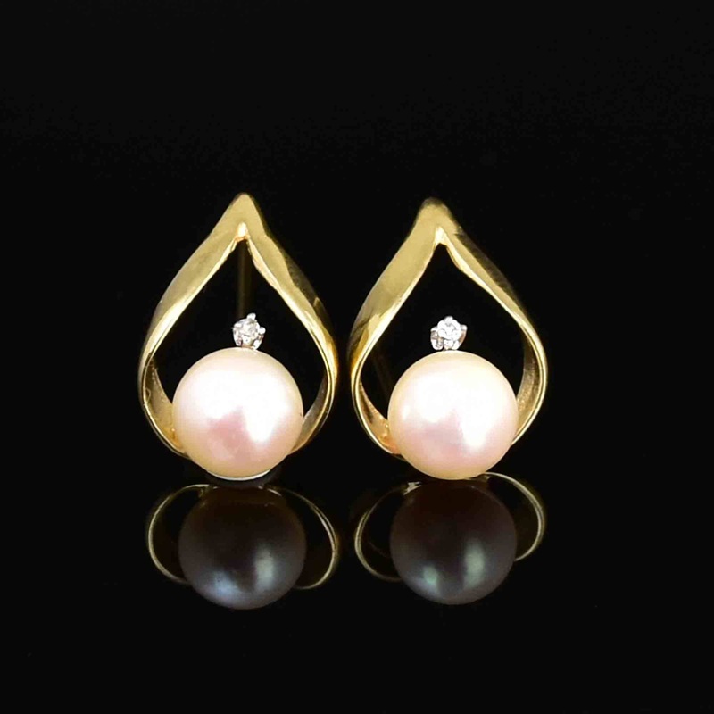 Be the first to review “Vintage Diamond Pearl Stud Earrings in 14K Gold”
