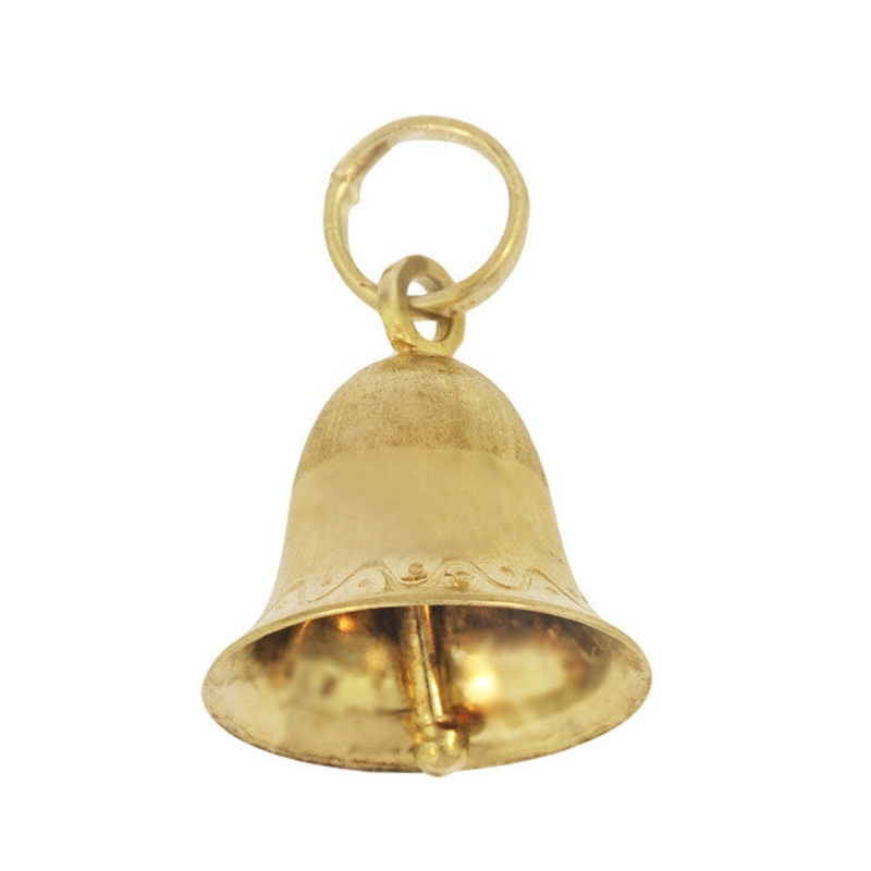 The movable bell measures 5/8 inch square and features delicate engraving around the base of the bell. The charm features a 14K yellow gold split ring bail that makes this charm perfect to wear on a favorite neck chain or easily and securely attaches this charm to a charm bracelet.
