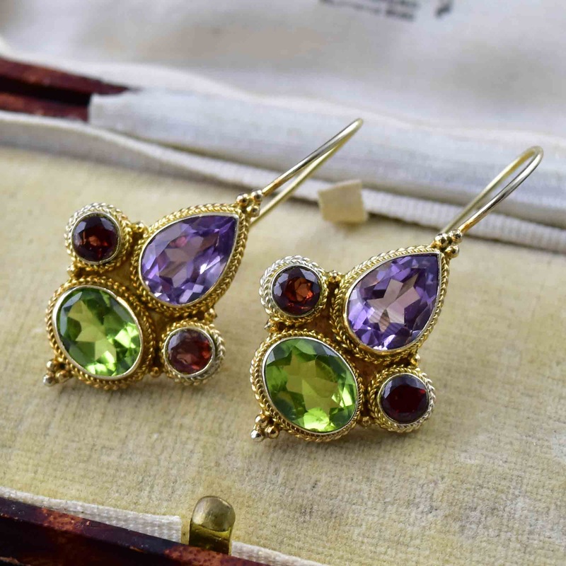 Vintage Garnet Amethyst Peridot Drop Earrings