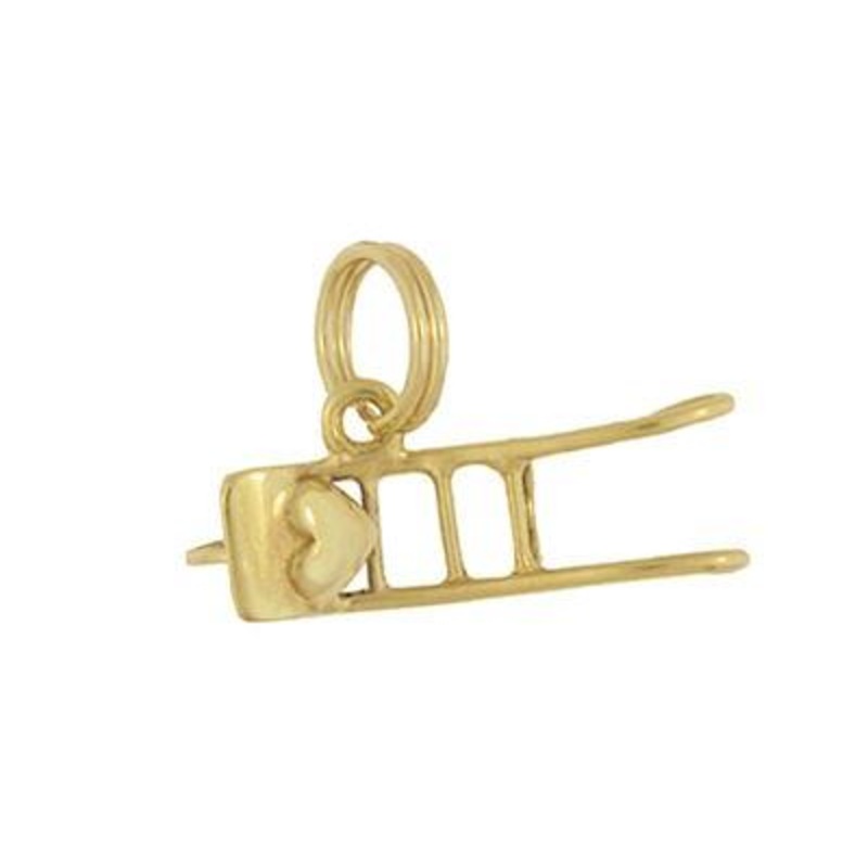 This unique wheel barrow charm features a 14K yellow gold split ring bail that makes this charm easy to securely attach to a charm bracelet.