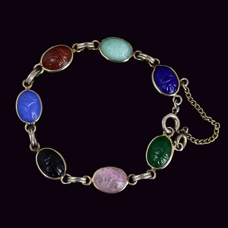 Vintage Multi Gemstone Egyptian Beetle Bug Scarab Bracelet