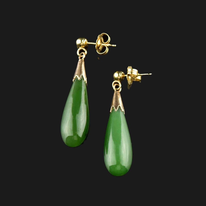 Vintage Natural Jade Teardrop Pendant Earrings in 14K Gold