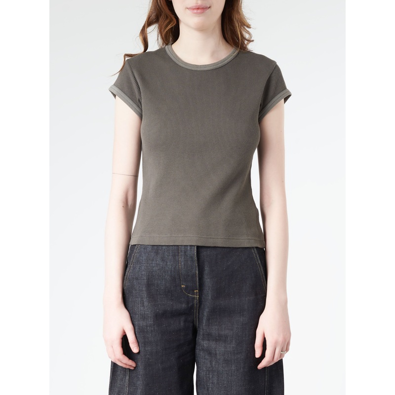 Crew neck t-shirt is cut to a fitted fit and a below waist length. Crafted from soft cotton with a garment-dyed finish and contrast binding.