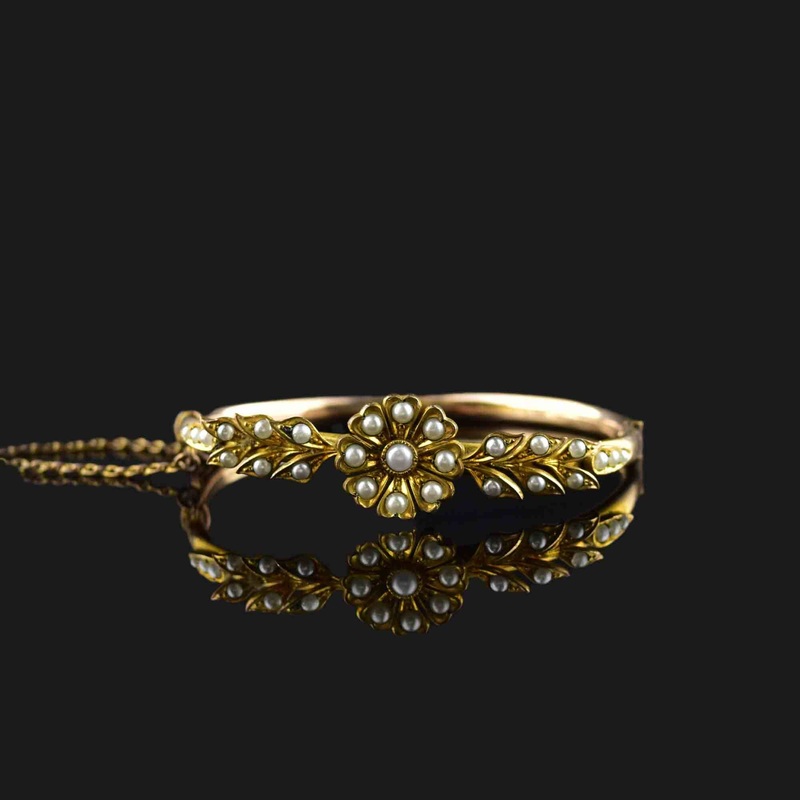 Vintage Victorian Style Seed Pearl Floral Bangle Bracelet