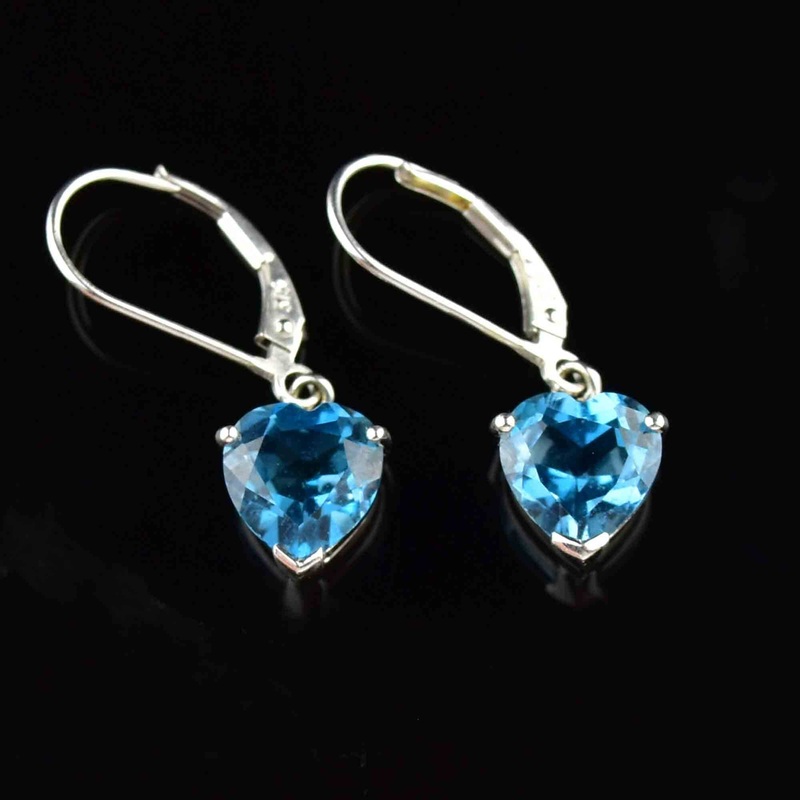 Add a touch of timeless elegance to your look with these vintage 9K white gold earrings featuring blue topaz hearts. The radiant, dancing flash and stunning blue color make them perfect for everyday wear or as a unique "something blue" for a bride. Secured