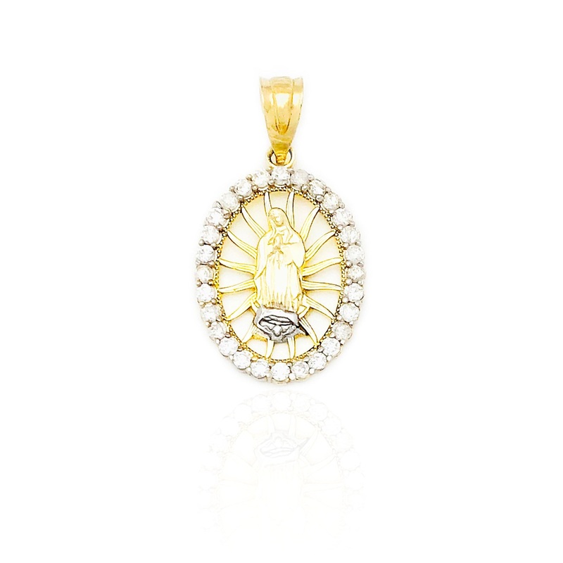 Virgin Mary Oval Radiant Light Frame Pendant (14K)