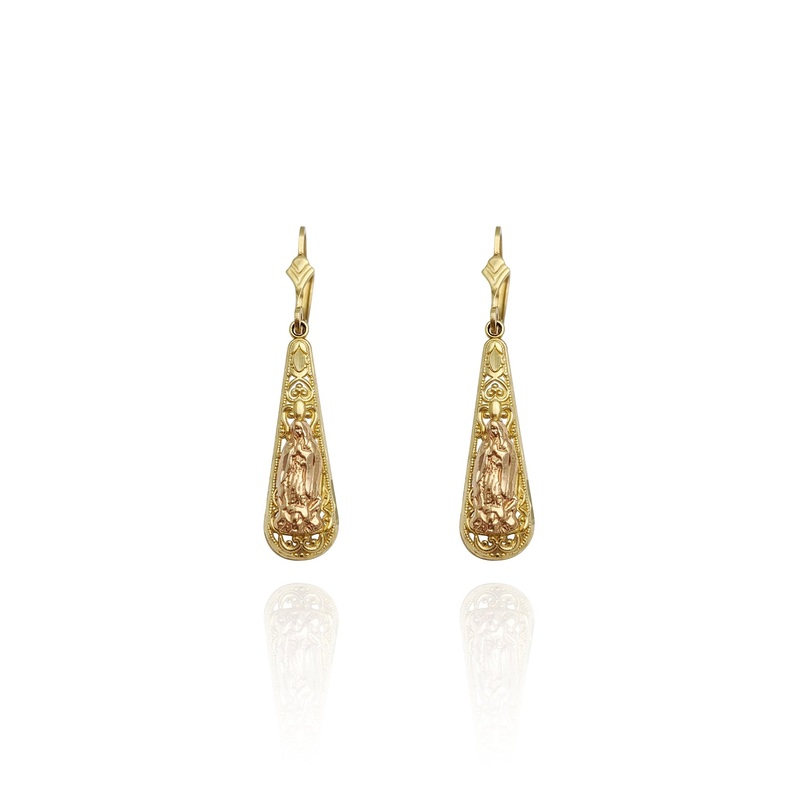 Virgin Mary Teardrop Dangling Earrings (14K)
