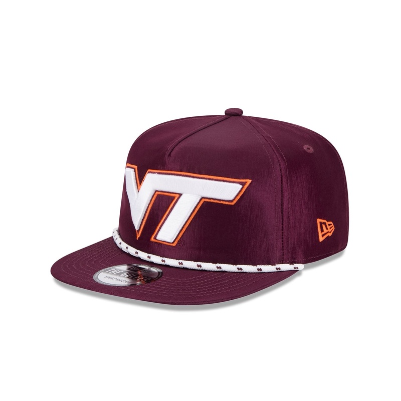 The Virginia Tech Hokies Team Rope Golfer features an embroidered Hokies logo at the front panels against a nylon fabrication throughout. Additional details include a white rope at the visor, a gray undervisor, and a snapback closure at the rear.