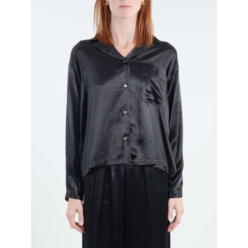 Pomandere blouse in shiny viscose with small slits along the hemline.Open collarFront button closureChest pocketButtoned cuffsStraight hemSide slitsMaterialsFabric Content: 100% viscoseMade in ItalySize GuideBrina wears size IT 38. She is 5'10.5"; bust 32"