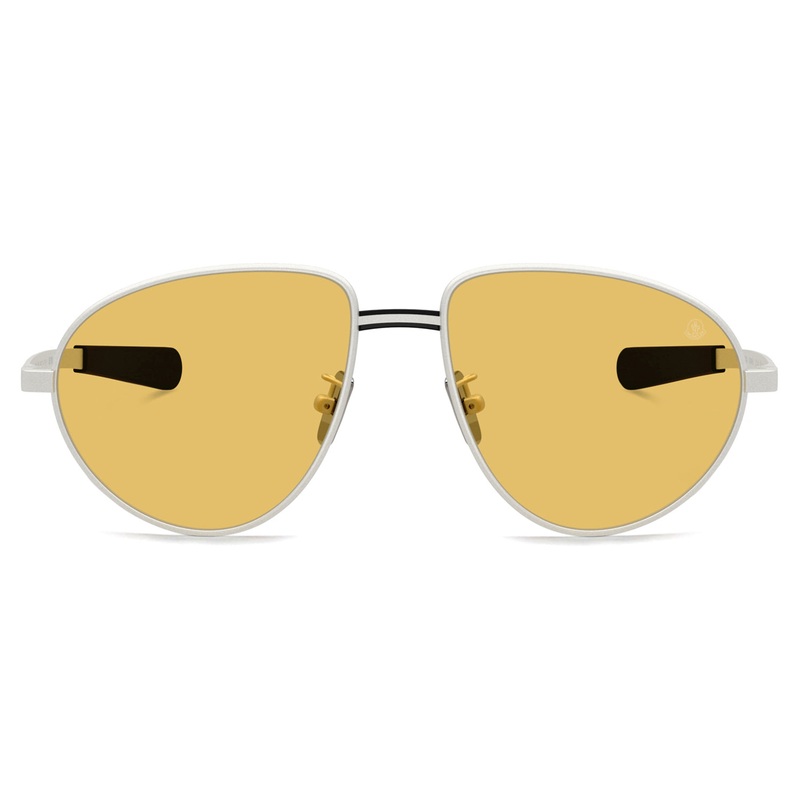 The Moncler Vizla (ME4009) features a sleek teardrop pilot silhouette, blending minimalist metal with bold rubber details for a striking, glacial-inspired aesthetic. The fusion of materials delivers a futuristic edge, while rubber accents and straight temp