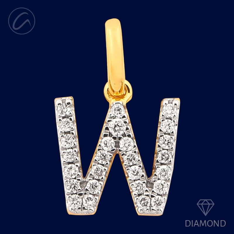 W Diamond Letter + 18k Gold Pendant