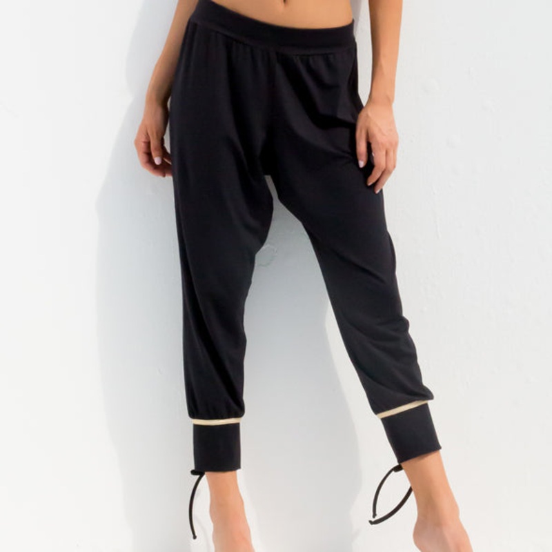 -Yoga pants with elastic hip band -Soft flexible fabric allows free easy movements -Gold stitch at the bottom with tie details-Durable piling resistant fabrics-Fabrics made from 65% recycled Polyamide and 35% Elastomer-UV protection of 50 %