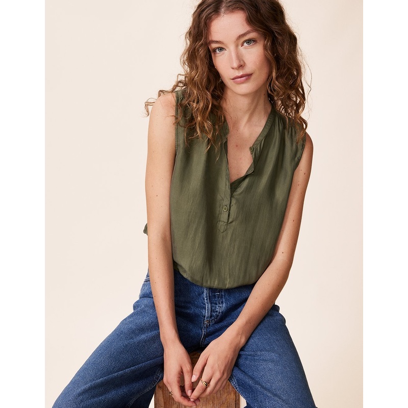 a utilitarian take on silk. this sleeveless top lends itself to everything from cargo pants, to jeans, to flowy skirts.