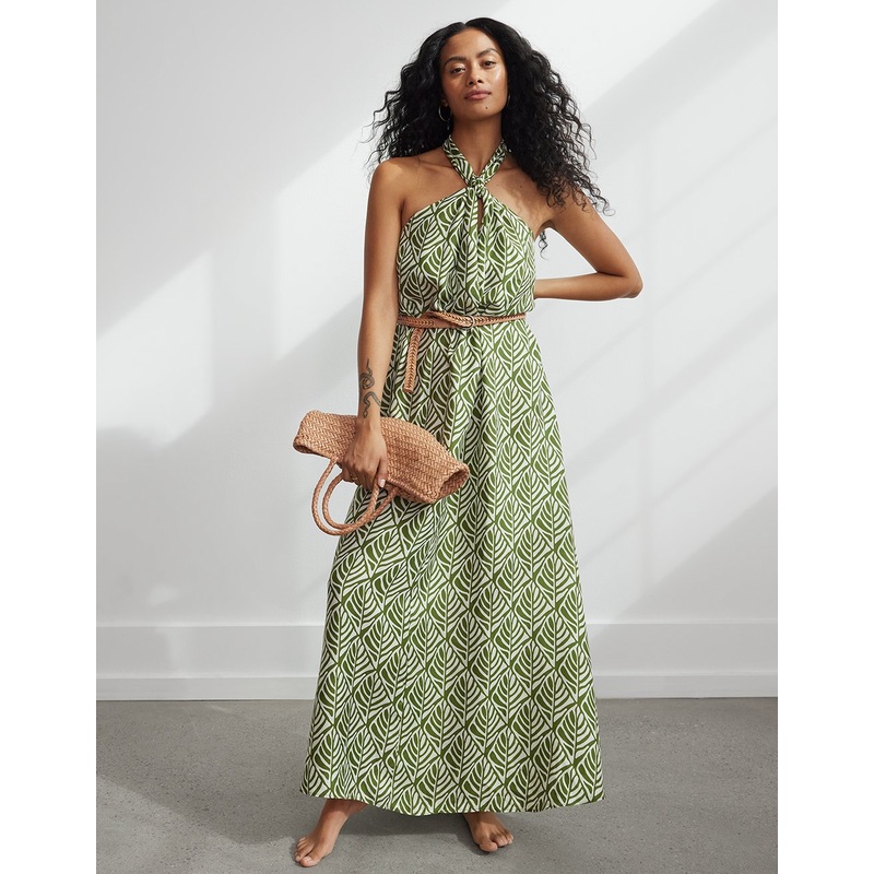 effortless elegance you can wear anywhere and everywhere. crafted from washable silk, this halter dress has a maxi length and flowy, column form that nods to vintage silhouettes.