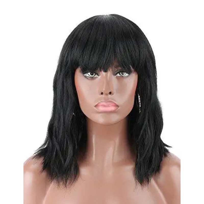 Wavy Mid Length Heat Resistant Wavy Wig with BangsMaterial: High quality heat Resistant Synthetic FibreLength: 14 inchesCap Size: Average