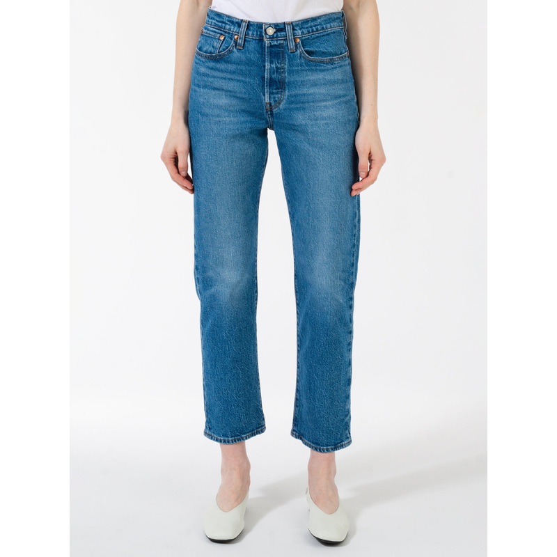 Inspired by vintage Levi's jeans, the Wedgie Fit hugs your waist and hips.Low stretch denimTop button closure with button flyFive pocket styleStraight leg28" inseamMaterialsFabric Content: 99% cotton, 1% elastaneSize GuideEmma wears size 27.Model is 5'9";