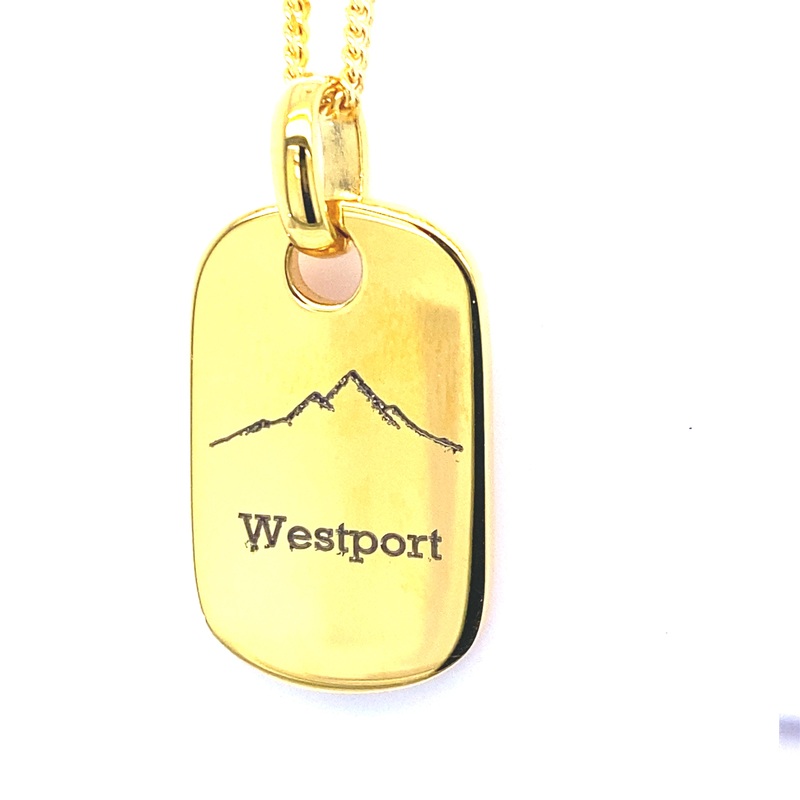 This sterling silver tag pendant is accompanied by a chain and features an engraving of the iconic Croagh Patrick mountain in the village of Murrisk on its front. Engraving is also available for the reverse side.