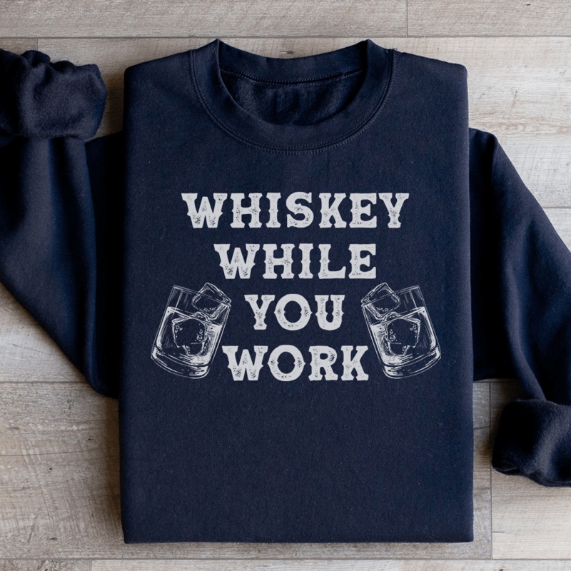 The phrase “Whiskey While You Work” adds a playful twist to your routine, blending the worlds of work and leisure. It’s more than just a sweatshirt; it’s a nod to enjoying life’s little pleasures, one sip at a time. So, pour yourself a glass, put on this sweatshirt, and toast to the good life!