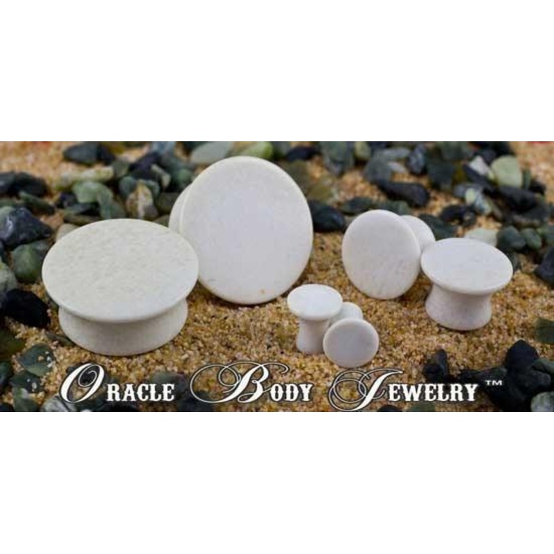 These mayan double flare White Agate plugs are made by Oracle Body Jewelry. Mayan flares feature a considerably larger front flare that better displays the character of each material, especially in smaller sizes. Choose your size below.8g to 6g = wearable