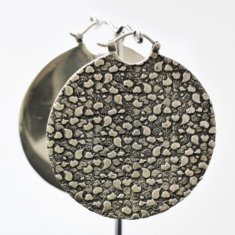 These rulerearringsare cast from solid white brass by Oracle Body Jewelry.Dimensions: 68mm high X 61mm wideWeight: approximately 32.4 grams each piece