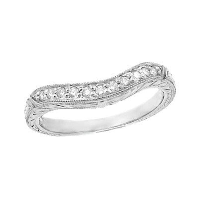 This ring is crafted by our jewelers in your choice of 14Kor18K white gold to coordinate with our curved engagement ring styles only. Orders for this ring without a previous or current order for a companion engagement ring from us will not be honored.